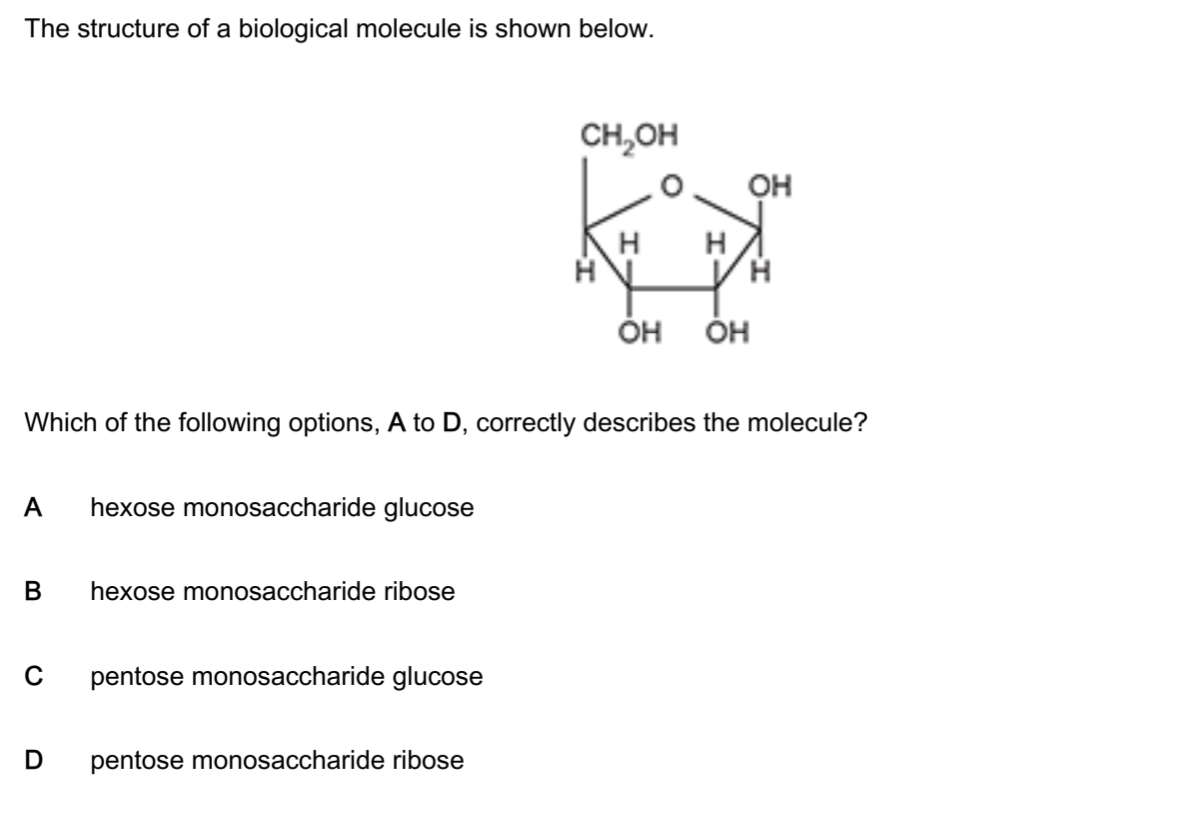 The most common pentose you need to know for A Level is ribose: