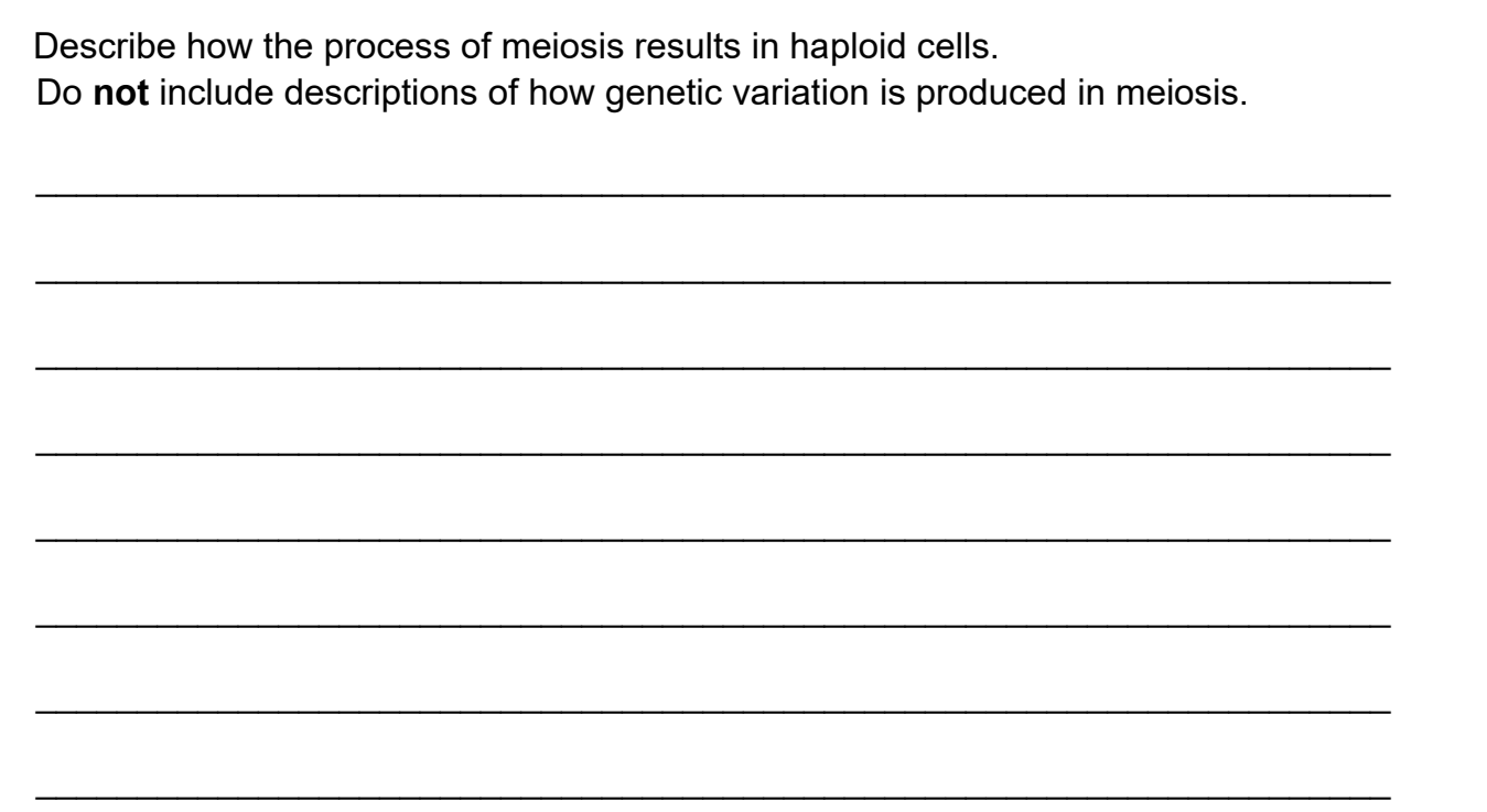 Why this question type is common: This tests fundamental understanding of meiosis mechanics without conflating it with genetic variation - a key distinction students often blur. The constraint about not including variation tests whether you truly understand the core process.