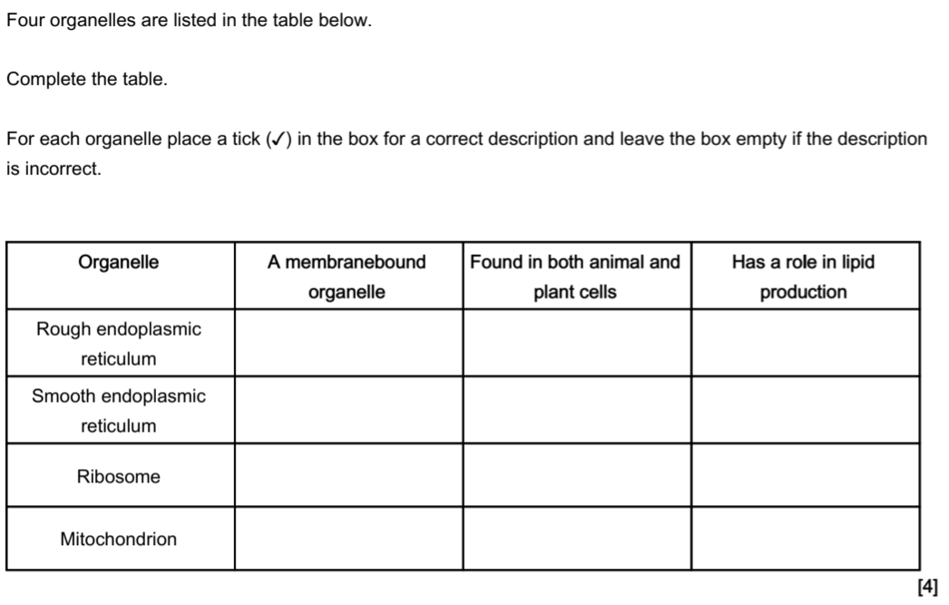 Examiner's comments: "This proved to be a good discriminator particularly at the lower end. Many candidates demonstrated a good understanding of cell ultrastructure achieving 3 or 4 marks. The most common error was thinking that ribosomes are membrane-bound organelles."