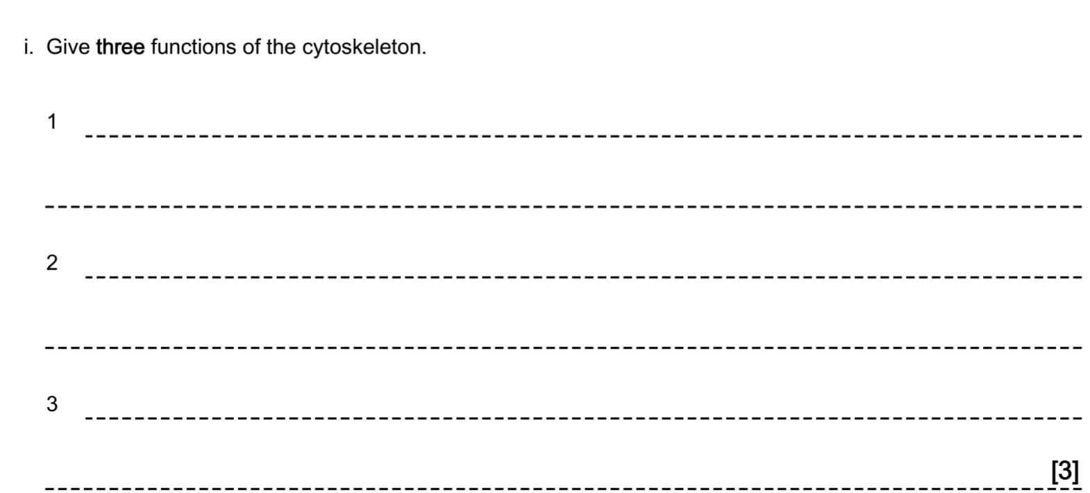 Critical examiner's comment: "Some candidates gave two answers that were the same marking point. For example, vesicles are considered organelles, and therefore 2 marks would not be gained for stating movement of vesicles, and movement of organelles, as this is still MP3."