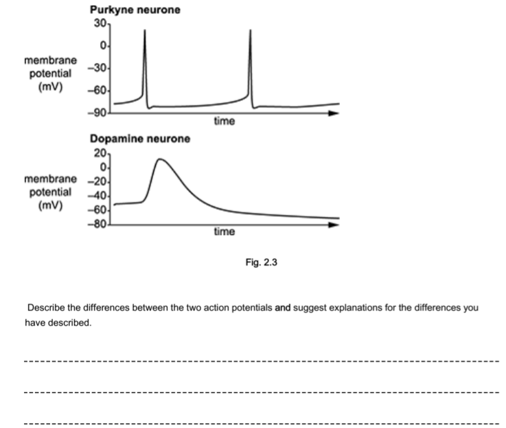 Describe what you see (e.g., "The dopamine neurone has a longer action potential duration")