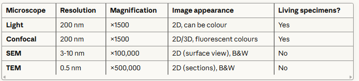 • Using a light microscope – at GCSE you learned to use a light microscope to observe cells; now you'll learn about different types of microscopes (electron microscopes and laser scanning confocal microscopes) and their specific applications