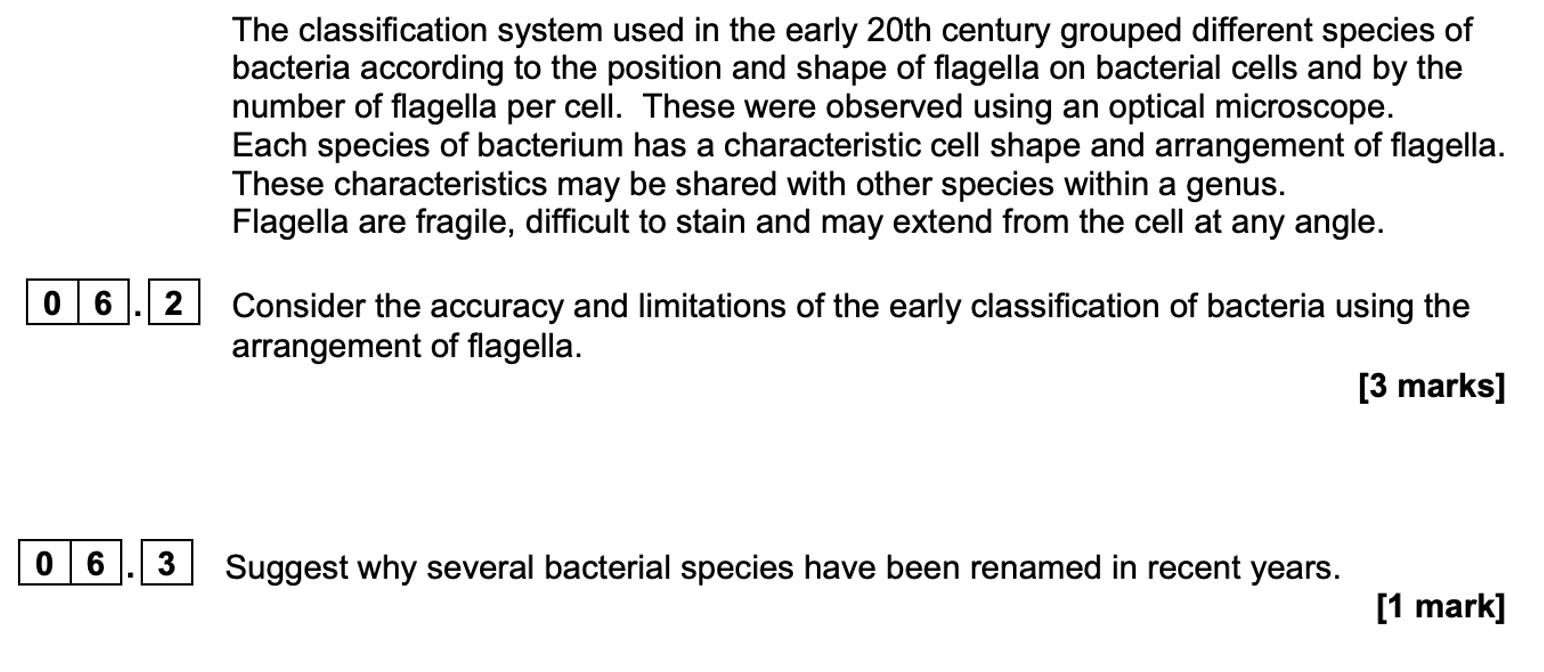 A question about historical classification of bacteria?! That topic is not in the spec!! Don’t panic – all the information you need about any off-spec topic will be provided in the question.